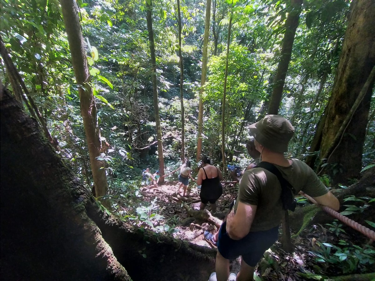 Na de lunch begint de hike naar één van de watervallen in het park. De hike duurt in totaal ongeveer 3 uren (heen en terug) en loopt via smalle paden door dicht regenwoud. Onderweg spot je vaak vogels, vlinders en met wat geluk zelfs brulapen.
